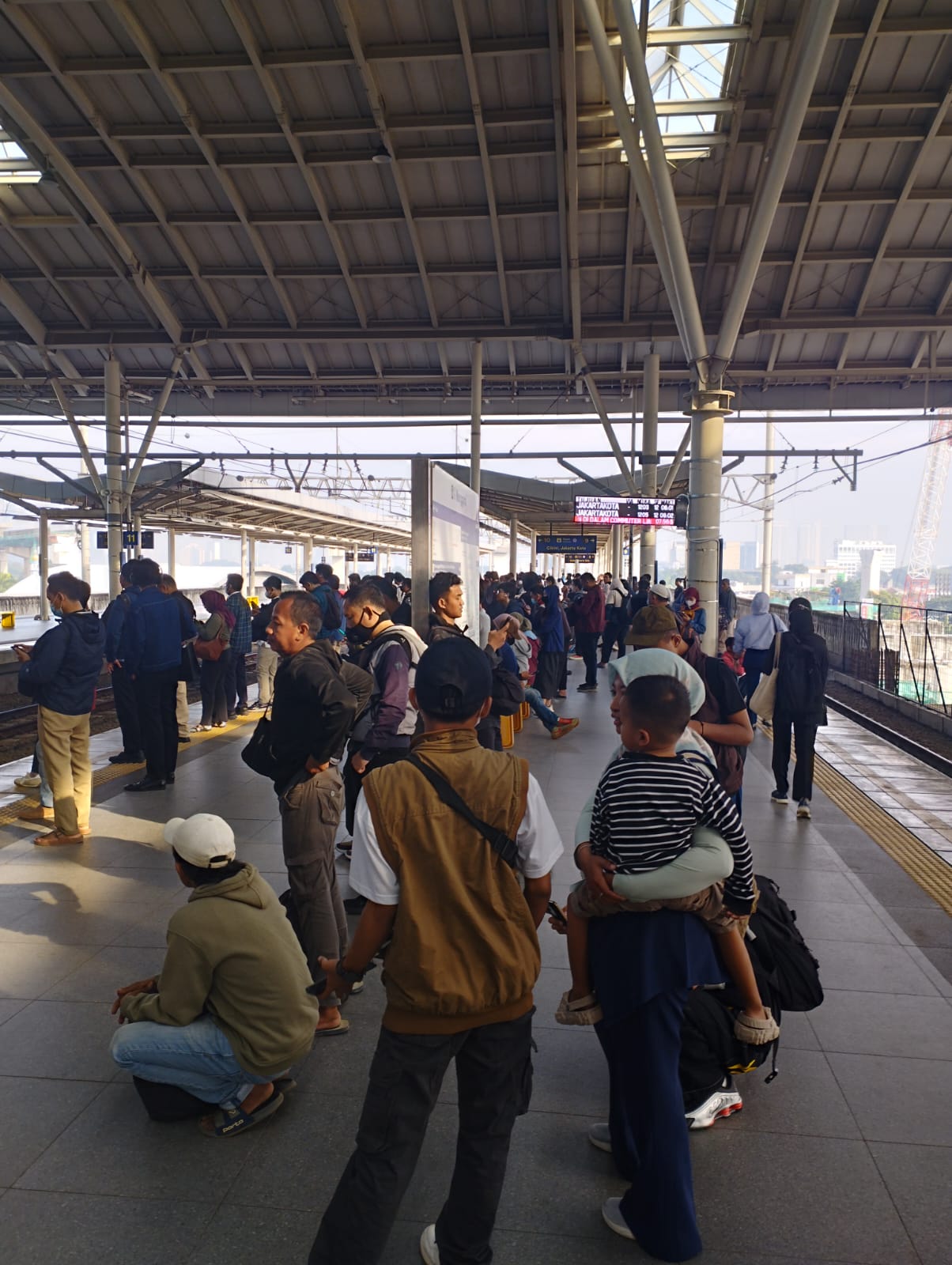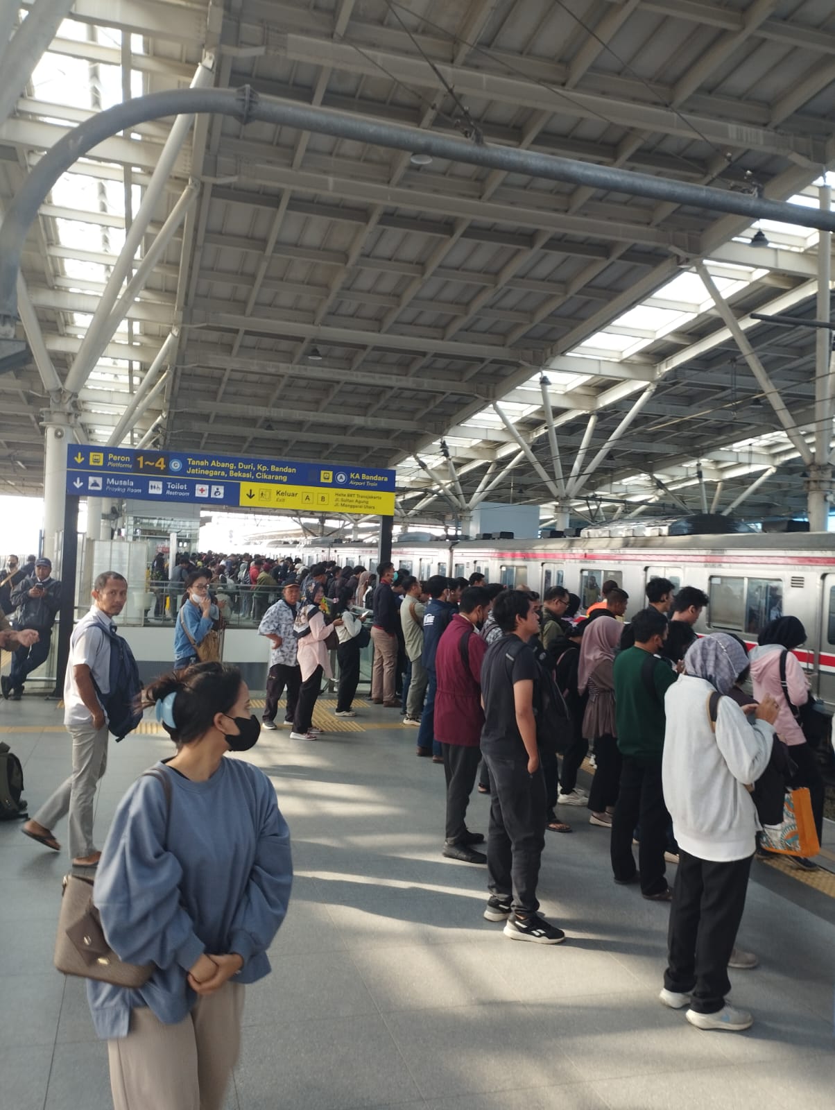 Kepadatan terjadi terutama pada jalur transit menuju arah Bekasi, Bogor, dan Tanah Abang. Banyak penumpang terlihat harus mengantre cukup lama untuk naik kereta, bahkan beberapa di antaranya tidak dapat masuk pada rangkaian pertama karena kapasitas sudah penuh.